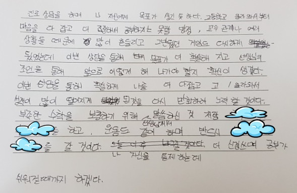 이번 상담을 통해 확실하게 나를 더 다잡고 고1 올라와서