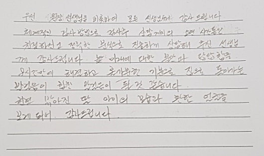 우선 원장 선생님을 비롯하여 모든 선생님들께 감사드립니다.