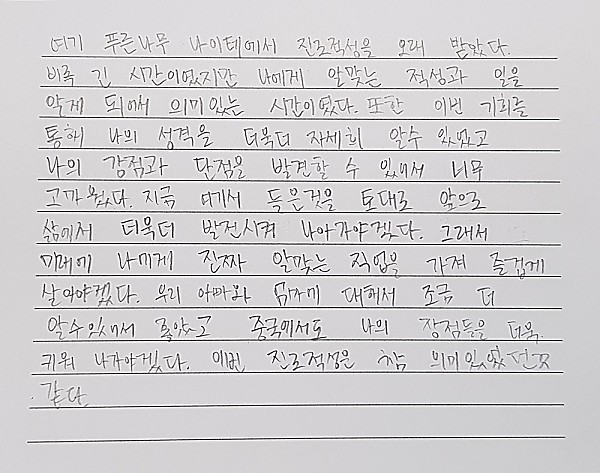 비록 긴 시간이였지만 나에게 알맞는 적성과 일을