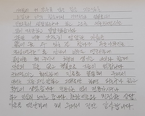 마음의 짐을 덜고 행복으로 가슴이 벅찹니다.