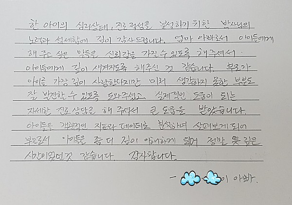 노력과 섬세함에 깊이 감사드립니다. 엄마 아빠로서 아이들에게