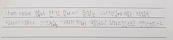 찾아서 기쁘다. 그 직업을 가지기 위해 열심히 해야겠다고 생각했다.