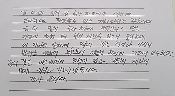 이 기회를 통하여 딸의 맞는 적성과 자신의