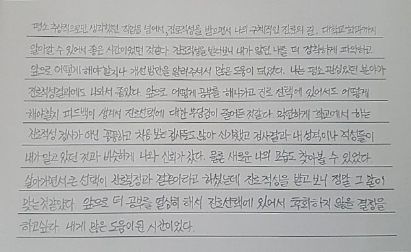 진로적성결과에도 나와서 좋았다. 앞으로 어떻게 공부를 해나가고 진로 선택에 있어서도 어떻게