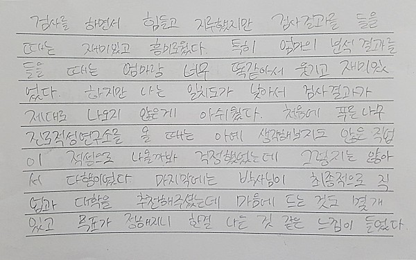 검사를 하면서 힘들고 지루했지만 검사결과를 들을