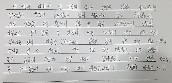 원장 선생님과 다른 분들께서 검사 중 많이 도와주셨기에 편안한