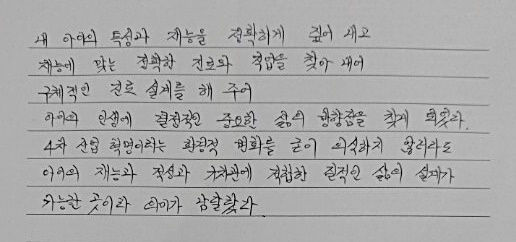 아이의 재능과 적성과 가치관에 적합한 질적인 삶의 설계가