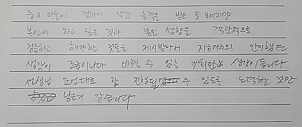 중3 아들이 결과에 약간 충격을 받은 듯 보이지만