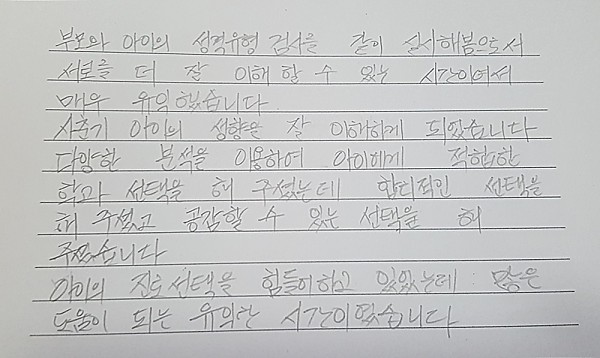 부모와 아이의 성격유형검사를 같이 실시해봄으로서