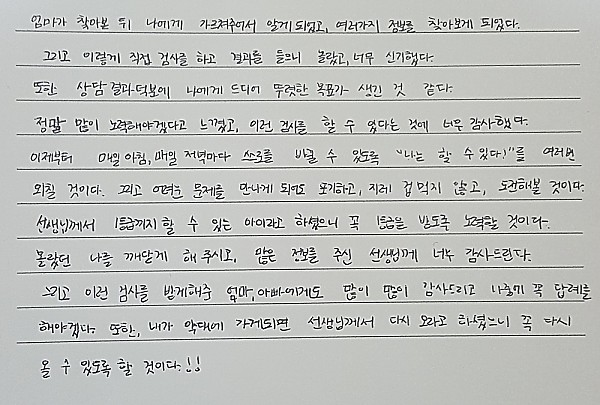 이제 아이 스스로 방법을 찾아서 노력할 것 같아서 다행이라고 생각합니다.