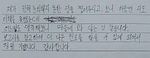 나이테 진로적성 후기(대구, 성인) 페이지 정보 작성자 관리자 작성일17-08-25 17:07 조회5,377회 댓글0건 이전글 다음글 목록 본문 제가 전혀 눈치채지 못한 점을 찝어주시고, 보니 처음엔 저도 이해를 못했는데 어느정도 생각해보니 마음에 와 닿는 것 같습니다. 보고서를 참고하여 더 나은 진로를 찾을 수 있게 되어서 정말 기쁩니다. 감사합니다. 댓글목록 등록된 댓글이 없습니다. 이전글 다음글 목록