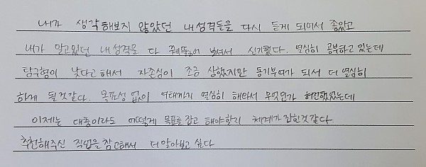 내가 생각해보지 않았던 내 성격들을 다시 듣게 되어서 좋았고