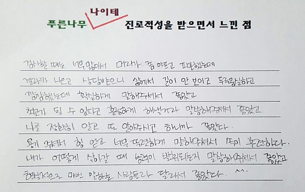 나를 정확히 알고 또 알아주시고 하니까 좋았다.