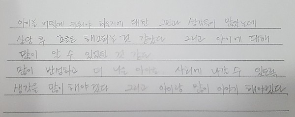 많이 반성하고 더 나은 아이로 사회에 나갈 수 있도록