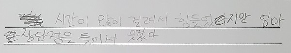 시간이 많이 걸려서 힘들었지만 엄마 장단점을 들어서 웃겼다.
