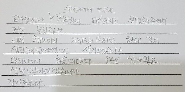 우리 아이가 힘들때마다 교수님 찾아뵙고 상담 받아야겠습니다. 감사합니다.