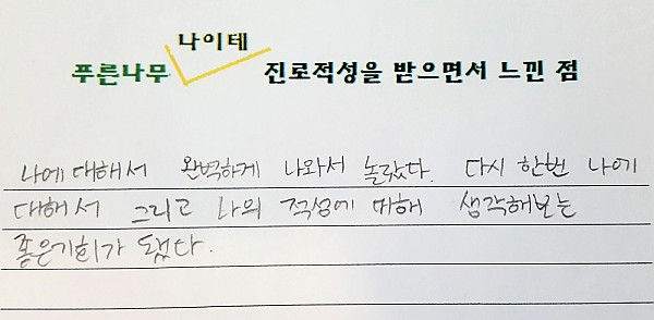 나이테 진로적성 후기 (학생) 페이지 정보 작성자 관리자 작성일17-02-12 17:52 조회5,263회 댓글0건 이전글 다음글 목록 본문 나에 대해서 완벽하게 나와서 놀랐다. 다시 한번 나에 대해서 그리고 나의 적성에 대해 생각해보는 좋은 기화가 됐다. 댓글목록 등록된 댓글이 없습니다. 이전글 다음글 목록