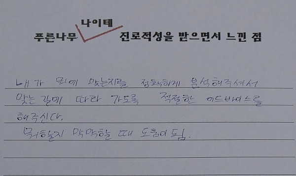 내가 뭐에 맞는지를 정확하게 분석 해주셔서 맞는 길에 따라 가도록 적절한 어드바이스를 해주신다.