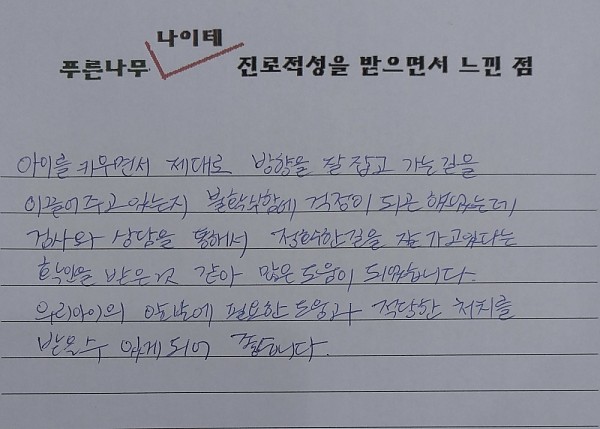 우리 아이의 앞날에 필요한 도움과 적당한 처치를 받을 수 있게 되어 좋습니다.