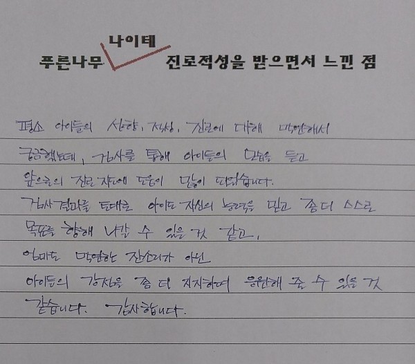 검사를 통해 아이들의 모습을 듣고 앞으로의 진로 지도에 도움이 많이 되었습니다.