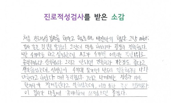 처음 진로적성 검사를 하자고 했을때, 반신반의 했다.