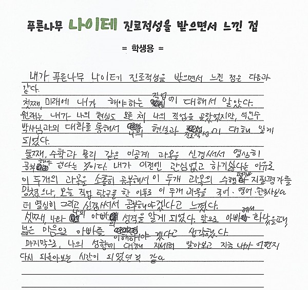 내가 푸른나무 나이테 진로적성을 받으면서 느낀 점은 다음과