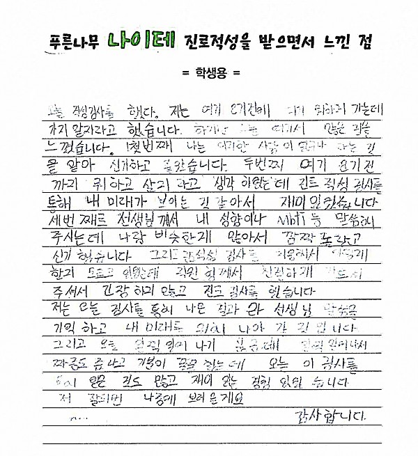 주셔서 긴장하지 않고 진로 검사를 했습니다.