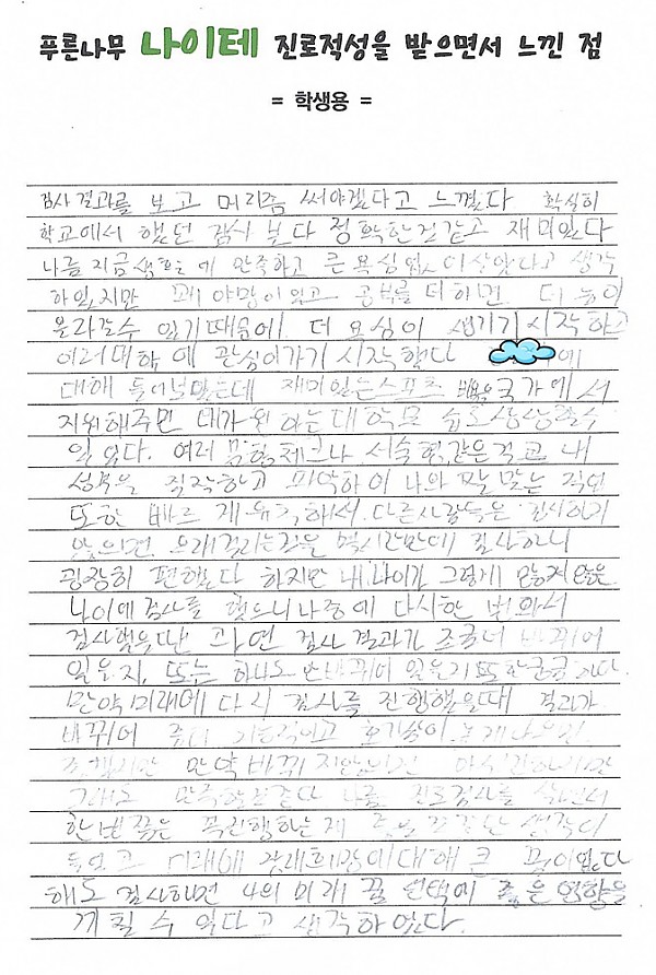 그래도 만족할 것 같다. 나름 진로검사를 살면서