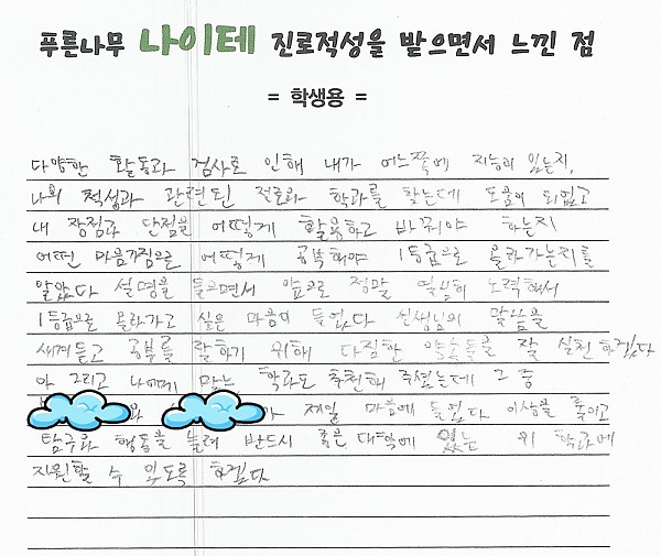 나이테 진로상담 후기(서울) 학생