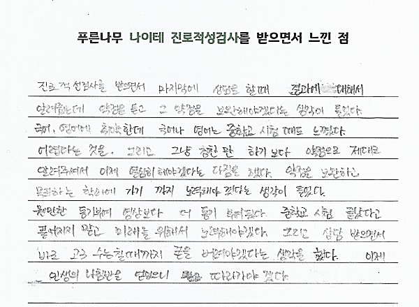 진로적성검사를 받으면서 마지막에 상담을 할 때 결과에 대해서