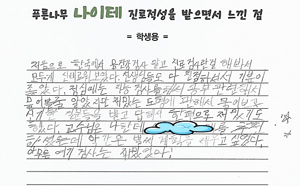 처음으로 한국에서 몸건강검사 말고 진로검사란 걸 해봐서