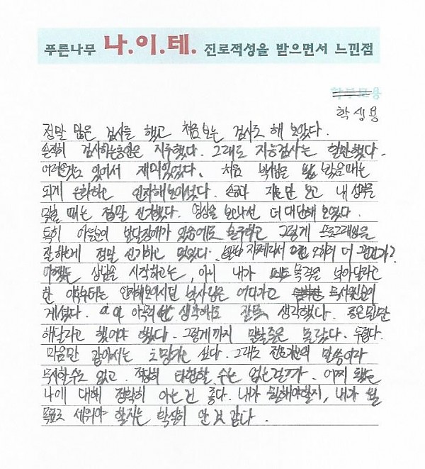 나이테 진로상담 후기(칠곡) 학생