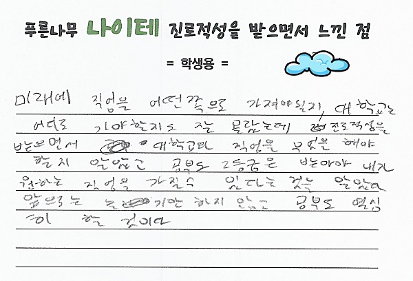 나이테 진로상담 후기(서울) 학생