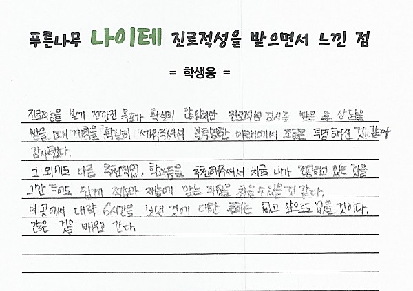 진로적성을 받기 전까진 목표가 확실치 않았지만 진로적성검사를 받은 후 상담을