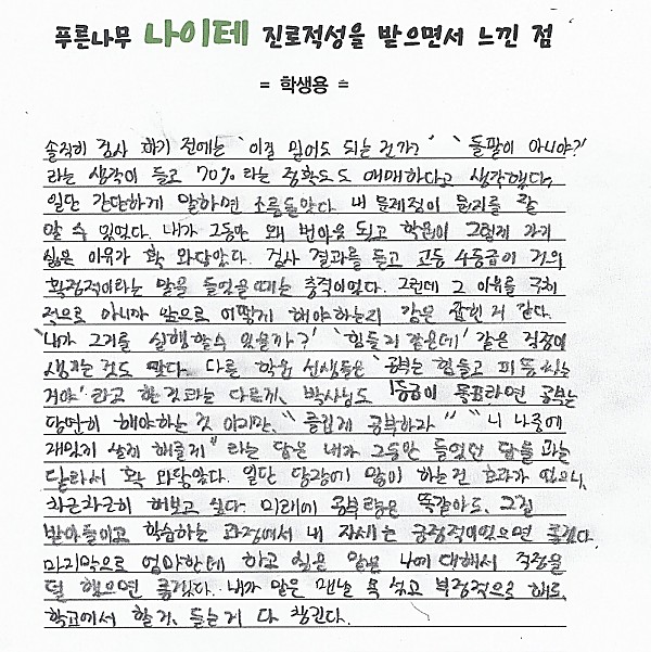 싫은 이유가 확 와닿았다. 검사 결과를 듣고 고등 4등급이 거의