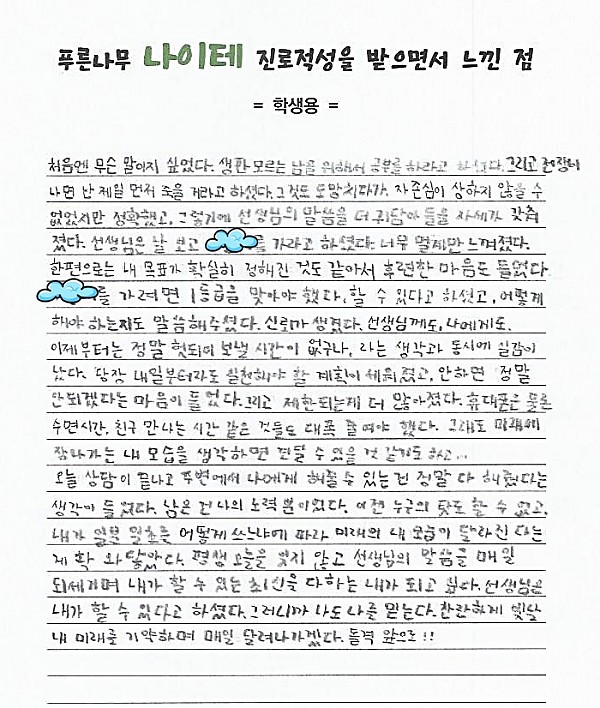 되새기면서 내가 할 수 있는 최선을 다하는 내가 되고싶다. 선생님은