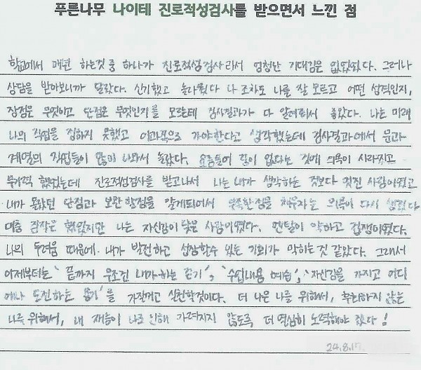 나이테진로상담후기 (대구) 학생